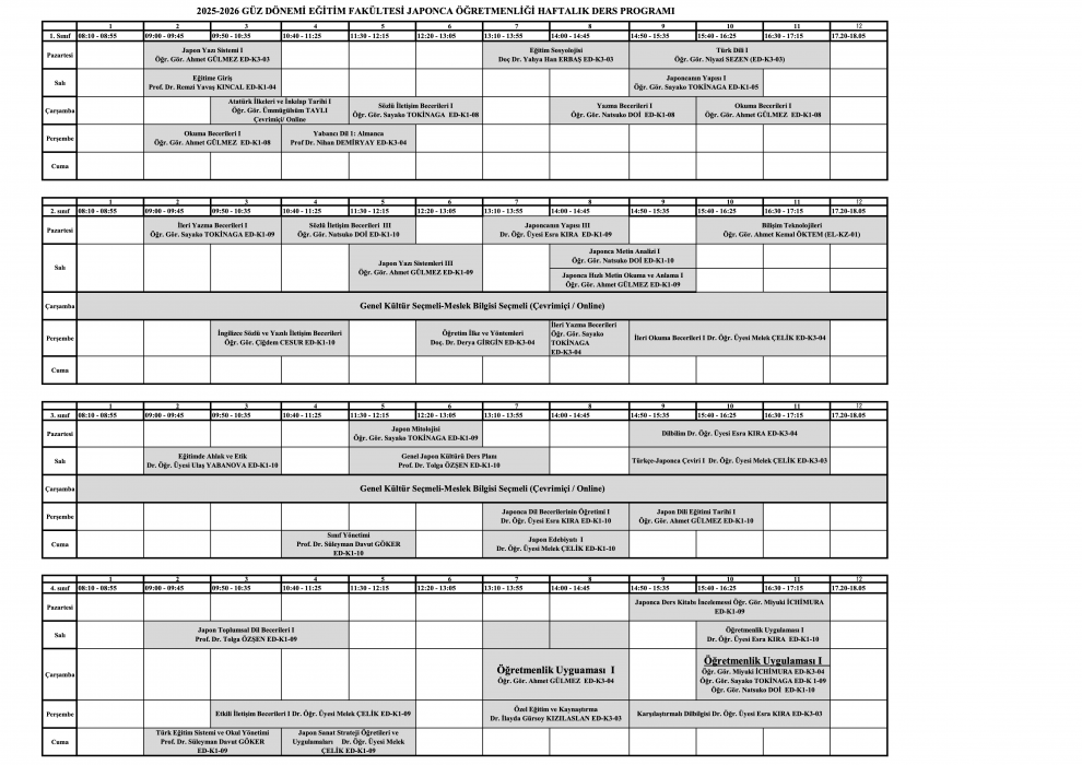 2025-2026 Akademik Yılı Güz Dönemi Ders Programımızda yapılan kısmi değişikliklerle 02.10.2025 tarihi itibarıyla güncel hali öğrencilerimizin bilgisine sunulur.
