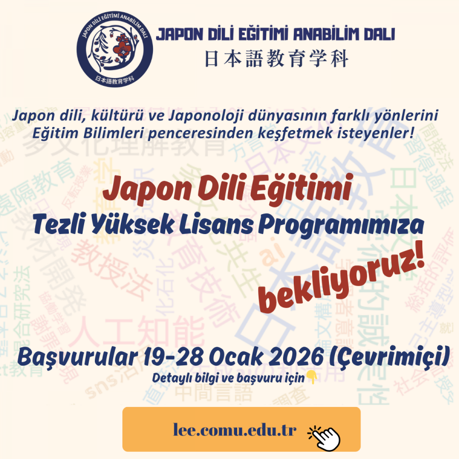 Japonca ve Japonoloji dünyasını Eğitim Bilimleri perspektifiyle keşfetmek isteyen tüm adayların ilgi ve bilgisine duyurulur.